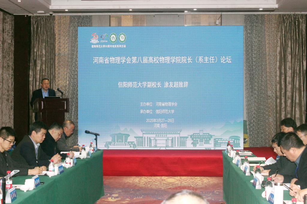 承办的河南省物理学会第八届高校物理学院院长(系主任)论坛在我校召开。来自全省高校的30余位物理学院院长(系主任)应邀参会。河南省物理学会常务理事、我校副校长涂友超出席开幕式并致辞。